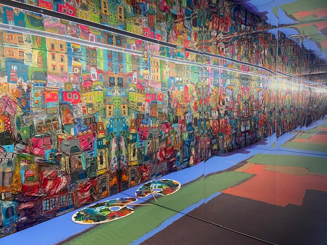 Ihre Teppiche und Installationen entfalten eine vibrierende, fast energetische Wirkung. Regenbogenartige Farbströme brechen aus dunklen Landschaften hervor und erzeugen immersive Räume, die Collins selbst als Vision einer „queeren Utopie“ beschreibt – eine Welt, die greifbar erscheint und doch immer knapp außerhalb der Reichweite bleibt. Ihre Arbeiten sprechen den Körper direkt an, erzeugen haptische Erfahrungen und verbinden politische Anliegen mit sinnlicher Wahrnehmung.